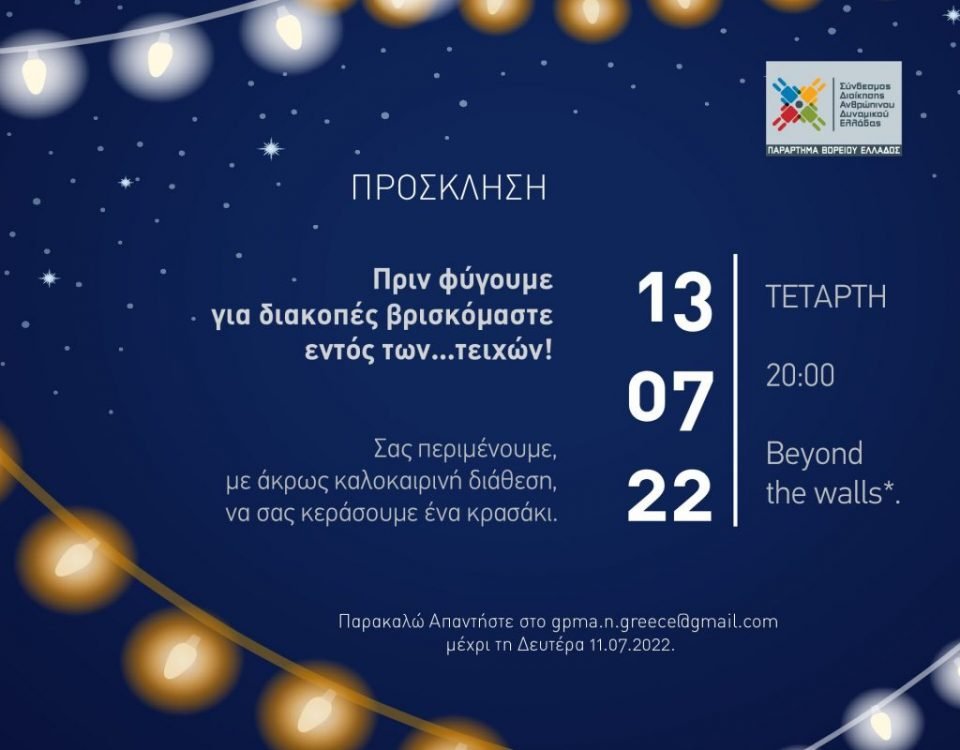 Τα μέλη της Διοικούσας Επιτροπής Παραρτήματος ΣΔΑΔΕ Βορείου Ελλάδος σας προσκαλούμε την Τετάρτη 13.07.2022 στις […]