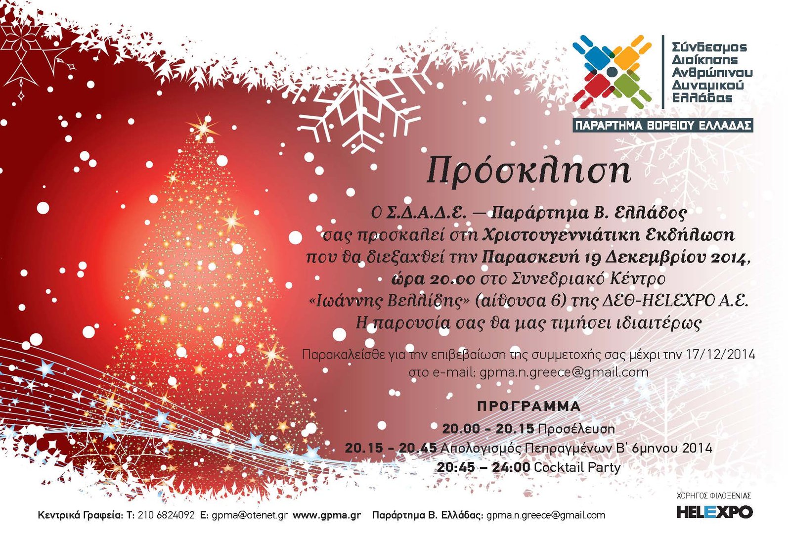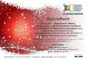 Το Παράρτημα Βορείου Ελλάδας διοργανώνει Χριστουγεννιάτικη Εκδήλωση την Παρασκευή 19 Δεκεμβρίου, 20:00 – 24:00.