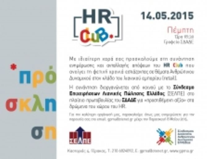 Η συνάντηση αυτή διοργανώνεται σε συνεργασία με το ΣΕΛΠΕ (Σύνδεσμος Επιχειρήσεων Λιανικής Πώλησης Ελλάδος), τον οποίο θα εκπροσωπήσει ο Πρόεδρός του, κος Αντώνης Μακρής, στο πλαίσιο της προσπάθειας του ΣΔΑΔΕ (Συνδέσμου Διοίκησης Ανθρώπινου Δυναμικού Ελλάδας) να “προσθέσει αξία” στα δρώμενα του επαγγελματικού μας χώρου, την Πέμπτη 14 Μαϊου και ώρα 18:30, στα γραφεία μας (Καστοριάς 4, 153 44 Γέρακας). Στη συνάντηση θα παρευρεθεί και η κα Χρυσηίς Πουλάκου, δικηγόρος εξειδικευμένη στο εργατικό δίκαιο, Εταίρος, Δικηγορική Εταιρία PPLegal.