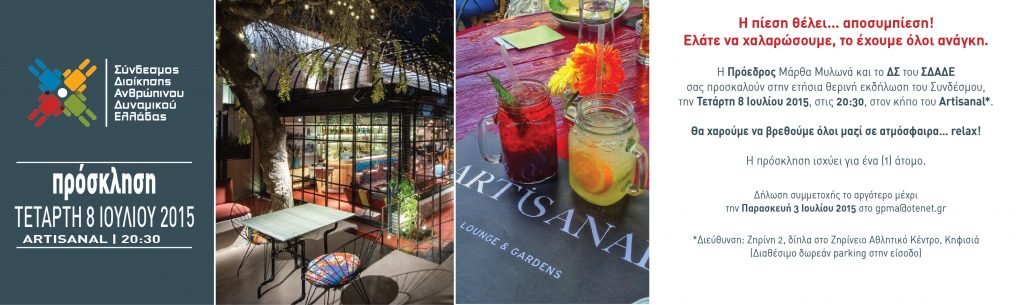 Θερινή Εκδήλωση ΣΔΑΔΕ – Τετάρτη 8 Ιουλίου 2015 – Artisanal